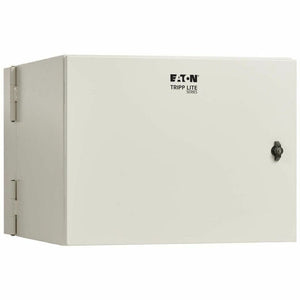 The fully welded steel housing locks securely with the included keys to protect its contents against theft, tampering, dust and other contaminants. The enclosure swings away from the wall on a sturdy hinge, allowing easy back-door access to equipment and cabling during installation and maintenance. Data and power cables may be routed through a bottom conduit cutout.