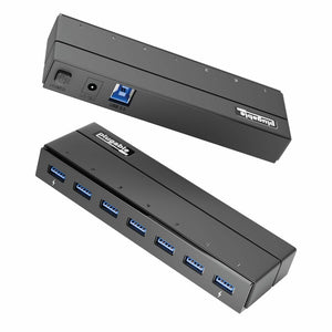 Connect up to seven USB 3.0, 2.0, or 1.1 devices to a single port on any computer. Fully plug and play, devices can be hot-swapped, supports USB over-current protection. Professional matte black with per-port blue LEDs.