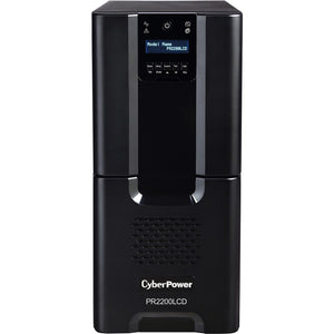 The CyberPower Smart App Sinewave PR2200LCD uninterruptible power supply (UPS) with LCD Control Panel and Active PFC compatible pure sine wave output safeguards mission-critical servers, telecom equipment, and internetworking hardware. Automatic Voltage Regulation (AVR) delivers consistent and clean AC power. Patented GreenPower UPS™ advanced circuitry reduces UPS energy costs compared to competitive models.
