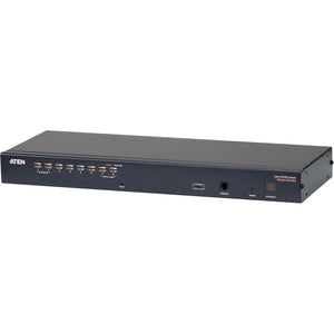 It allows access to eight directly connected computers, and through a daisy chain connection, an additional 31 KVMs to control a total of 256 computers from a single console.