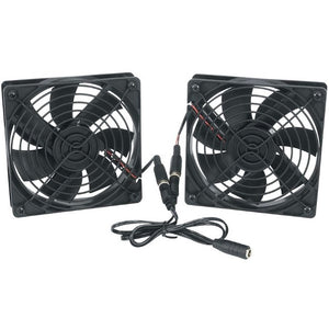 Fan kits for the Vertical wall mount include (2) 12VDC fans, power and grounding cord, fan guards, and hardware needed for installation. Fans deliver 70 CFM each and provide active cooling to wall mount cabinets.