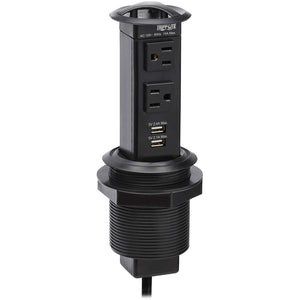 This Power It!® dock is designed for installation in your desktop's pre-cut three-inch grommet hole. When not being used to power or charge devices, you can push down the PS22POPAM into the grommet and flush against the desktop's surface to save valuable space. To connect devices, simply pop it up out of the hole. This Pop-Up Power and Charging Dock is ideal for home and office workstations with limited desk space.