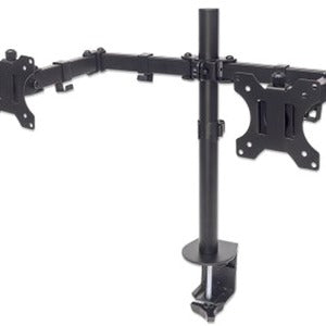 Manhattan TV & Monitor Mount, Desk, Full Motion, 2 Screens, Screen Sizes: 10-27" , Black, Clamp Assembly, Dual Screen, VESA 75x75 to 100x100mm, Max 8kg (each), Lifetime Warranty