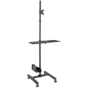 This workstation with monitor mount has four swivel casters, so you can roll it wherever your work takes you. The placement of the monitor and keyboard tray are adjustable, so you can use the DMCS1732S as a standing desk or a sitting workspace at home, school or the office. Because of its small footprint, the workstation fits in spaces too small for a traditional desk. When not in use, the workstation can be rolled into a secure area for storage. Two of the casters lock to prevent unwanted movement.