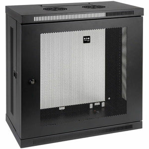 The SRW12U13 SmartRack 12U Low-Profile Patch-Depth Wall-Mount Rack Enclosure Cabinet is designed to house EIA-standard 19-inch rack equipment in network wiring closets, retail locations, back offices, classrooms and other areas with limited floor space where you need equipment to be secure, organized and out of the way. Constructed from heavy-duty steel with a durable black powder-coated finish, the cabinet has a maximum load capacity of 200 pounds.The side panels and front door lock securely to help prevent damage, tampering or theft. The front, top, bottom and removable side panels are vented, which allows air to flow freely and keep equipment cool. The reversible front door can open left or right by rotating the cabinet 180° before mounting. Convenient top and bottom ports allow easy cable routing. The SRW12U13 comes fully assembled and ready to mount to the wall, or use Tripp Lite's optional SRCASTER rolling caster kit to make it a mobile rack. Square and threaded mounting holes and numbered rack spaces make equipment installation easy. The vertical mounting rails adjust in 7/8-inch increments to accommodate equipment up to 13 inches deep, such as patch panels and shallow network switches.
