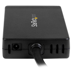 Through the USB-C host connector, this hub gives you three traditional USB-A ports, and a Gigabit Ethernet connection, making it a must-have laptop accessory. Plus, the integrated 30 cm (12 in.) cable lets you place the hub, your devices, and your network connection, exactly where you need them. It's ideal for virtually any USB-C equipped laptop, such as Dell™ XPS, MacBook Pro, Chromebook Pixel™, or other MacOS or Windows based laptop or tablet. Take advantage of USB-C This dynamic USB 3.0 hub is TAA compliant and integrates an easy-to-use USB Type-C™ connector. It's small and reversible, which makes for easier insertions, and you can connect the plug with either side facing up, which means less risk of damaging your ports and less frustration. While your USB-C equipped laptop, or MacBook is lightweight and portable, it might be missing vital connectivity ports, such as wired Internet. Because this hub offers a Gigabit Ethernet port, you can connect to a network in locations were Wi-Fi® is unreliable or unavailable. Compact design for portability or permanent placement With a small footprint and lightweight housing, you can easily tuck the hub and the included power adapter into your laptop bag to expand your connectivity when you're traveling. Plus, the compact USB 3.0 hub takes up minimal space on a desk, so it fits perfectly in office, hot-desk (short-term guest), and BYOD workstation environments. Extended-length cable eliminates aggravation The hub's built-in USB cable is long enough to reach your laptop or tablet's USB 3.0 port, regardless of where the port is located. Now, you can eliminate the worry and frustration when your hub's built-in cable is too short and doesn't reach your laptop's USB port location. Plus, the extended-length cable provides you with more desk placement options, which makes it easier to create a comfortable, space-efficient work area. Save money and time This easy-to-use hub is natively supported in most operating systems, and you can install it quickly, without having to install additional drivers or software. You can also avoid the nuisance and cost of purchasing new devices, by using the USB 3.0 hub with your current USB 2.0 and 1.x devices. The HB30C3A1GE is backed by a StarTech.com 2-year warranty and free lifetime technical support.